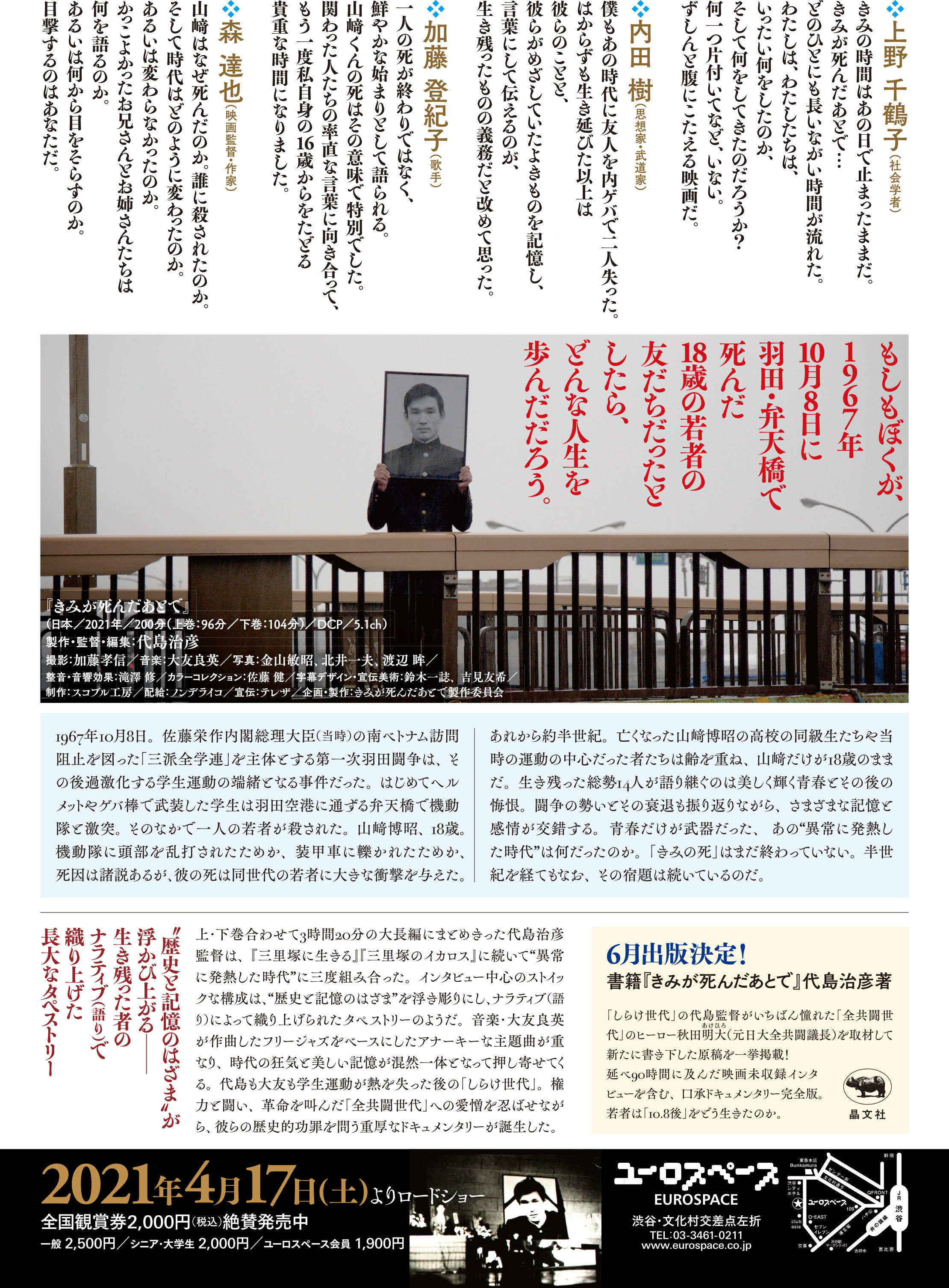 代島治彦監督が「きみが死んだあとで」を語る~週刊金曜日に映画評掲載